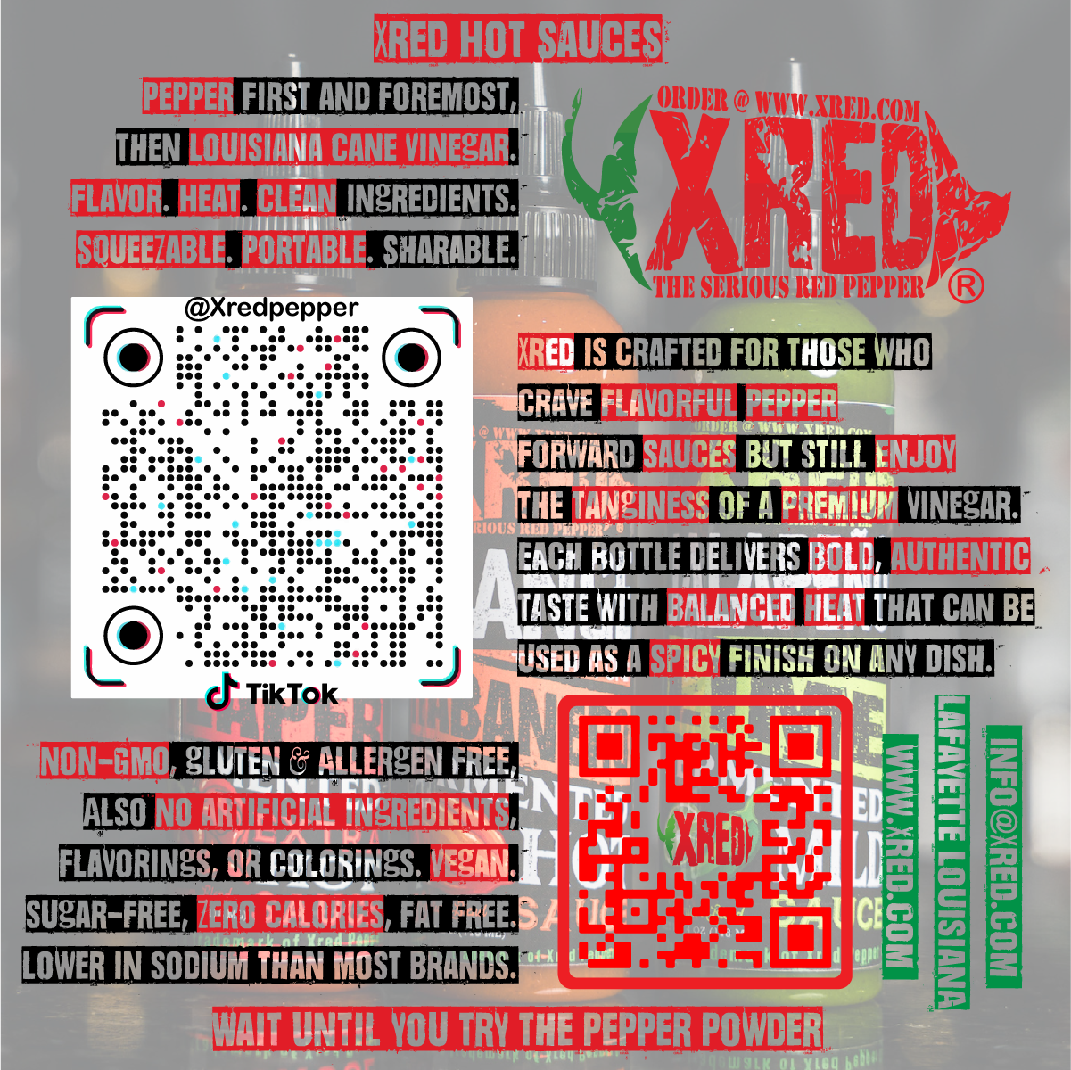 Made using select Carolina Reaper peppers and premium Louisiana Cane Vinegar, this sauce balances flavor with fiery heat. When used delicately, it can elevate any dish. The Xred brand challenge isn’t trying it…it’s trying to quit.